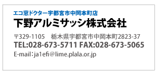 エコ窓ドクター宇都宮市中岡本点「下野アルミサッシ株式会社」0284-71-1898 エコ窓ドクター野木店「奈良サッシ」0280-33-6815